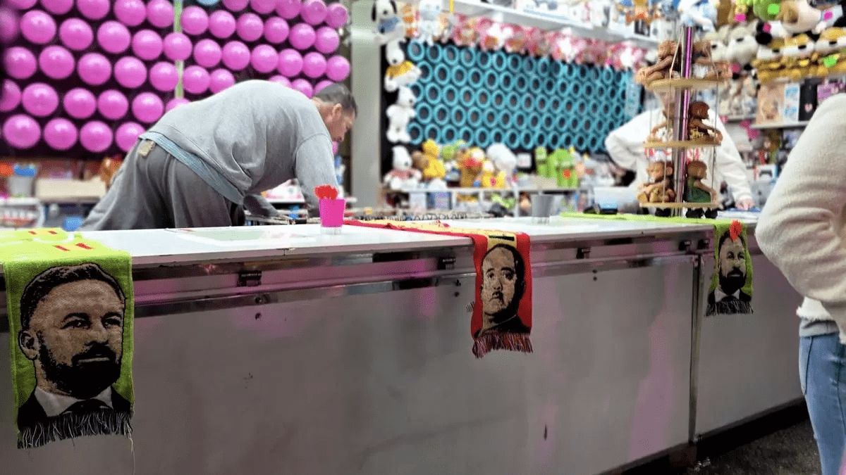 La feria de atracciones instalada en Castellón ha desatado una fuerte polémica en redes sociales después de que varios visitantes denunciaran la presencia de bufandas con la imagen del dictador Francisco Franco y el lema franquista “Arriba España” entre los premios de un puesto de juegos de puntería. Las fotografías, que rápidamente se difundieron por redes sociales, muestran también bufandas con el rostro de Santiago Abascal, líder del partido de ultraderecha Vox.