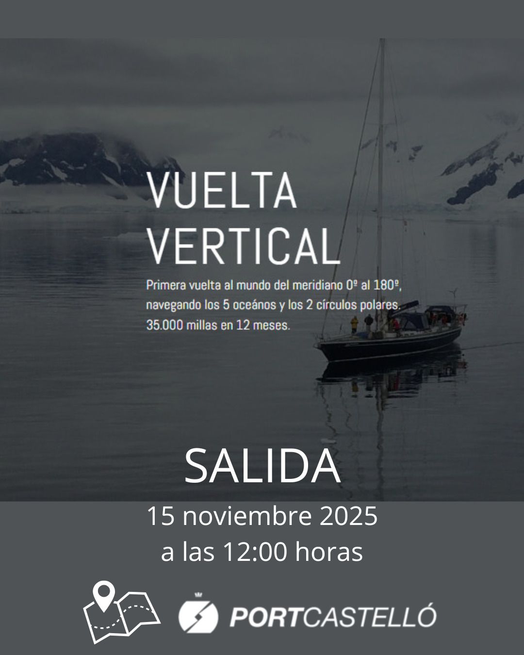 PortCastelló acoge este sábado la salida de la I Vuelta al Mundo Vertical a vela. La expedición saldrá a las 13 horas del puerto de Castellón donde se ha convocado a embarcaciones de recreo para despedir al velero ‘Alegría Marineros’ y sus capitanes, la castellonense, Paula Gonzalvo (Allende los Mares) y Pedro Jiménez (Alegría Marineros). Este hecho sin precedentes tendrá como protagonista al puerto de Castellón y el Meridiano de Greenwich que pasa por nuestra ciudad.