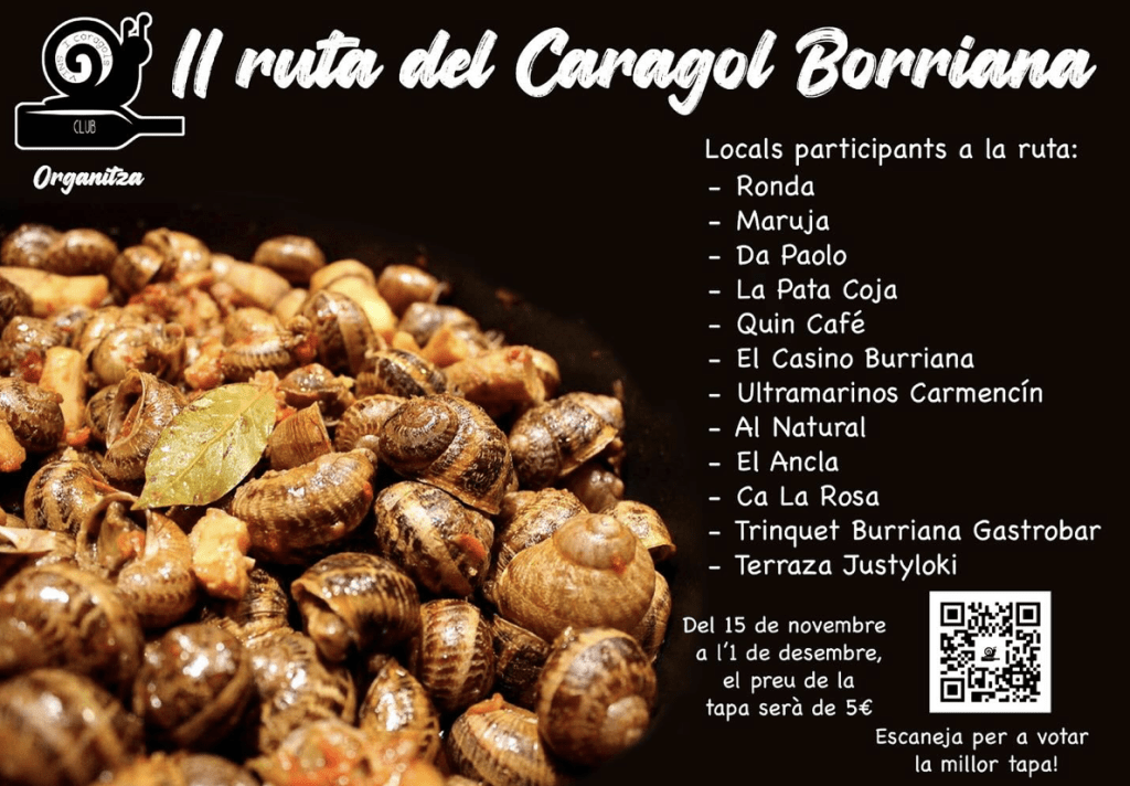 Burriana vuelve a poner el caracol en el centro de su oferta culinaria con la segunda Ruta del Caragol, impulsada por la societat “Vins i Caragols” y doce establecimientos de la ciudad.