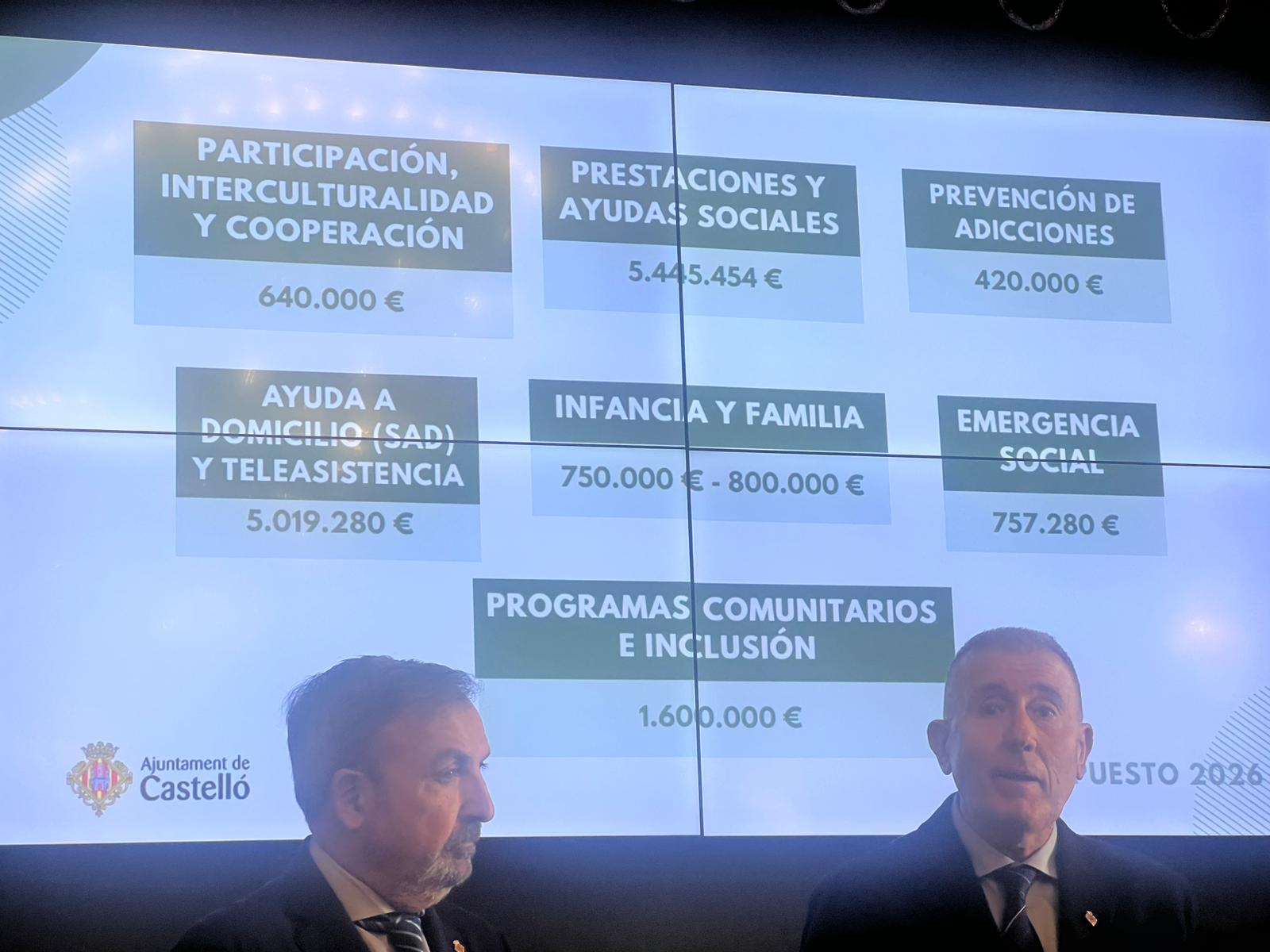 El ámbito de Bienestar Social suma 14,54 millones, destinados a emergencia social, dependencia, albergue municipal, atención a la infancia y familia, programas comunitarios y prevención de adicciones. El área incorpora además ocho nuevas plazas de personal especializado.