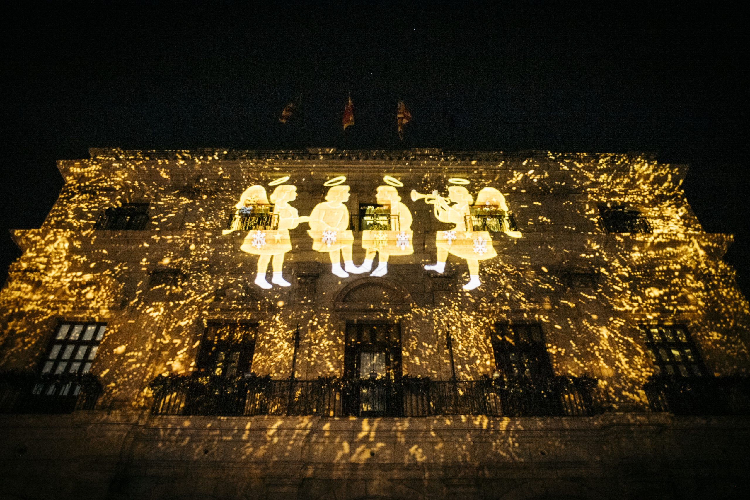 Tot seguit han cobrat protagonisme els quatre àngels custodis de la plaça Major amb un nou espectacle combinant jocs de llum al so de nadales. No han faltat els focs artificials ni la música en directe, com és habitual en els últims anys.