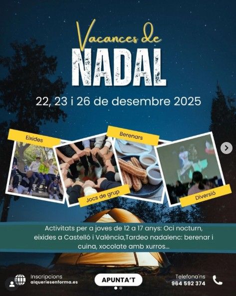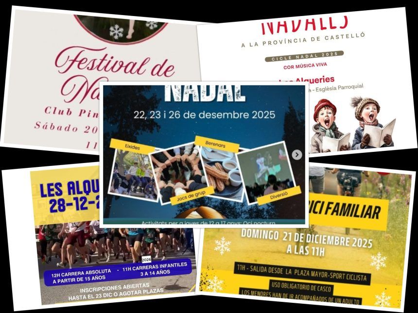 La Navidad llega a Les Alqueries con un completo programa de eventos para todas las edades. Desde la inauguración del Belén Municipal hasta la tradicional Cabalgata de Reyes, pasando por talleres infantiles, conciertos, carreras y actividades deportivas, vecinos y visitantes podrán vivir la magia de estas fiestas en plazas, parques y espacios culturales del municipio. Un calendario repleto de diversión, música y espíritu navideño que se prolongará hasta la llegada de los Reyes Magos.