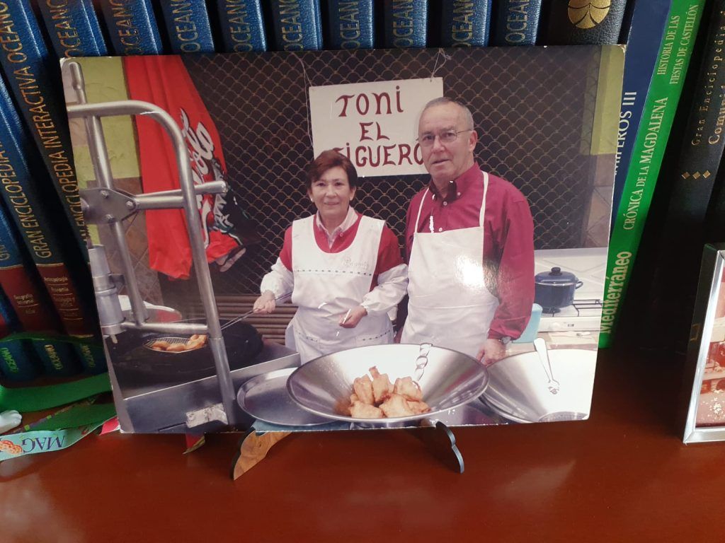 Toni Sebastián, junto con su inseparable mujer, Paquita Cardo, forman parte del imaginario colectivo castellonense; en su parada de venta ambulante, han ofrecido durante décadas las preciadas ‘figues albardaes’ en todas las fiestas de la ciudad. Es miembro de una saga familiar dedicada a esta tarea, que comenzó en los años cuarenta del siglo pasado, con su madre, Anita ‘la monsagua’, que montaba su parada allí donde la requerían. Ahora, una vez jubilado, ha cedido el testigo a su hijo, Antonio Sebastián Cardo, y a su nuera, Mati Charquero, que regentan la ‘Botiga de la Figa’, establecimiento ubicado en la calle San Félix.  En la ‘botiga’ podemos degustar la típica ‘figa albardà’, churros con chocolate y otras delicatessen a base de figa y otros dulces, tanto para tomar en el propio local como para llevar. La saga continúa.