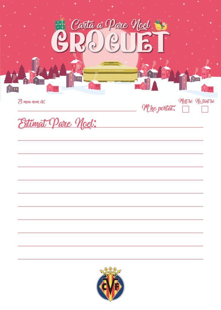 Para la ocasión, el Villarreal CF ha diseñado una carta especial, pensada exclusivamente para los groguets. Se puede descargar de forma totalmente gratuita desde el pie de la noticia o solicitarla en las Tiendas Oficiales del Villarreal CF, facilitando así que ningún pequeño se quede sin entregar su mensaje navideño.