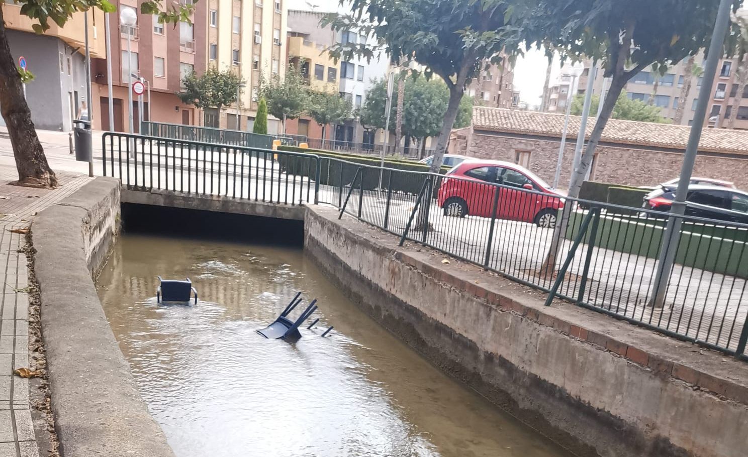 No es un hecho aislado. Cuando se trata de fiestas en Vila -real, el primer día suele dejar estampas similares. Sin ir más lejos, durante las fiestas de la Virgen de Gracia del pasado mes de septiembre, ya en el primer viernes de festejos, la acequia apareció con una mesa y varias sillas en su interior, sorprendiendo por el tamaño y volumen de los objetos arrojados.