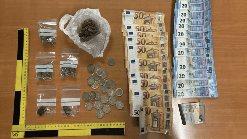 Como resultado del registro, los guardias civiles localizaron varias bolsas con droga, que sumaban cerca de seis gramos de hachís y más de veinte gramos de marihuana. Además, se intervino una cantidad de dinero en efectivo que ascendía a 811 euros, presuntamente vinculada a la actividad ilícita.