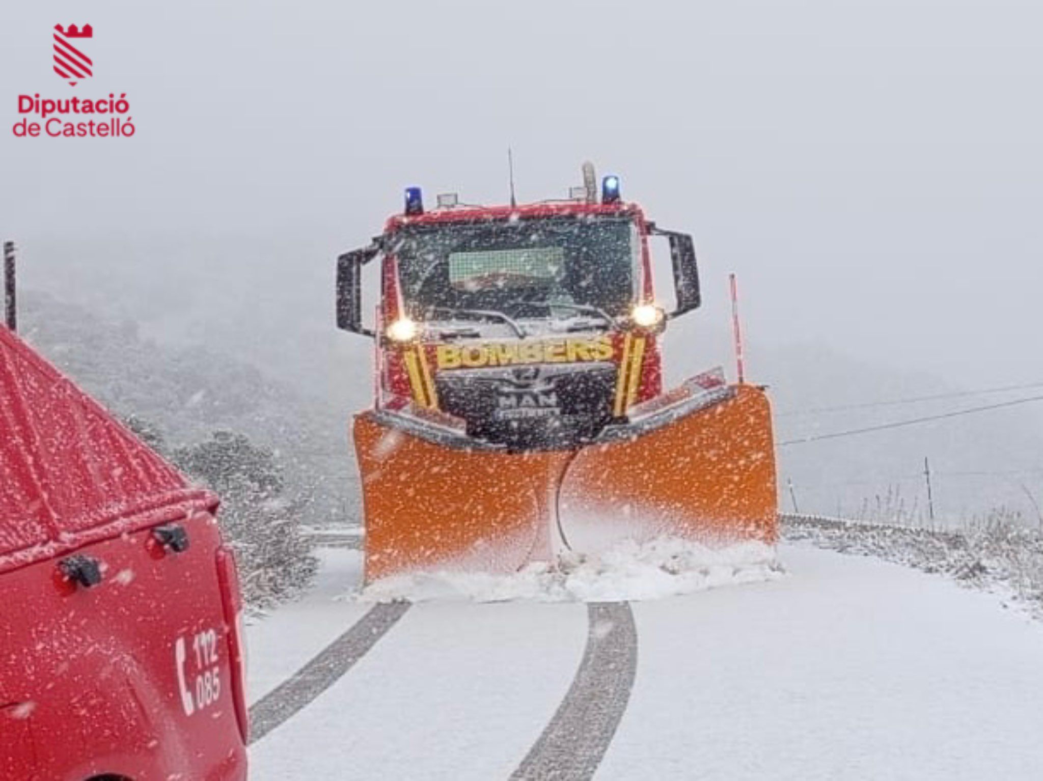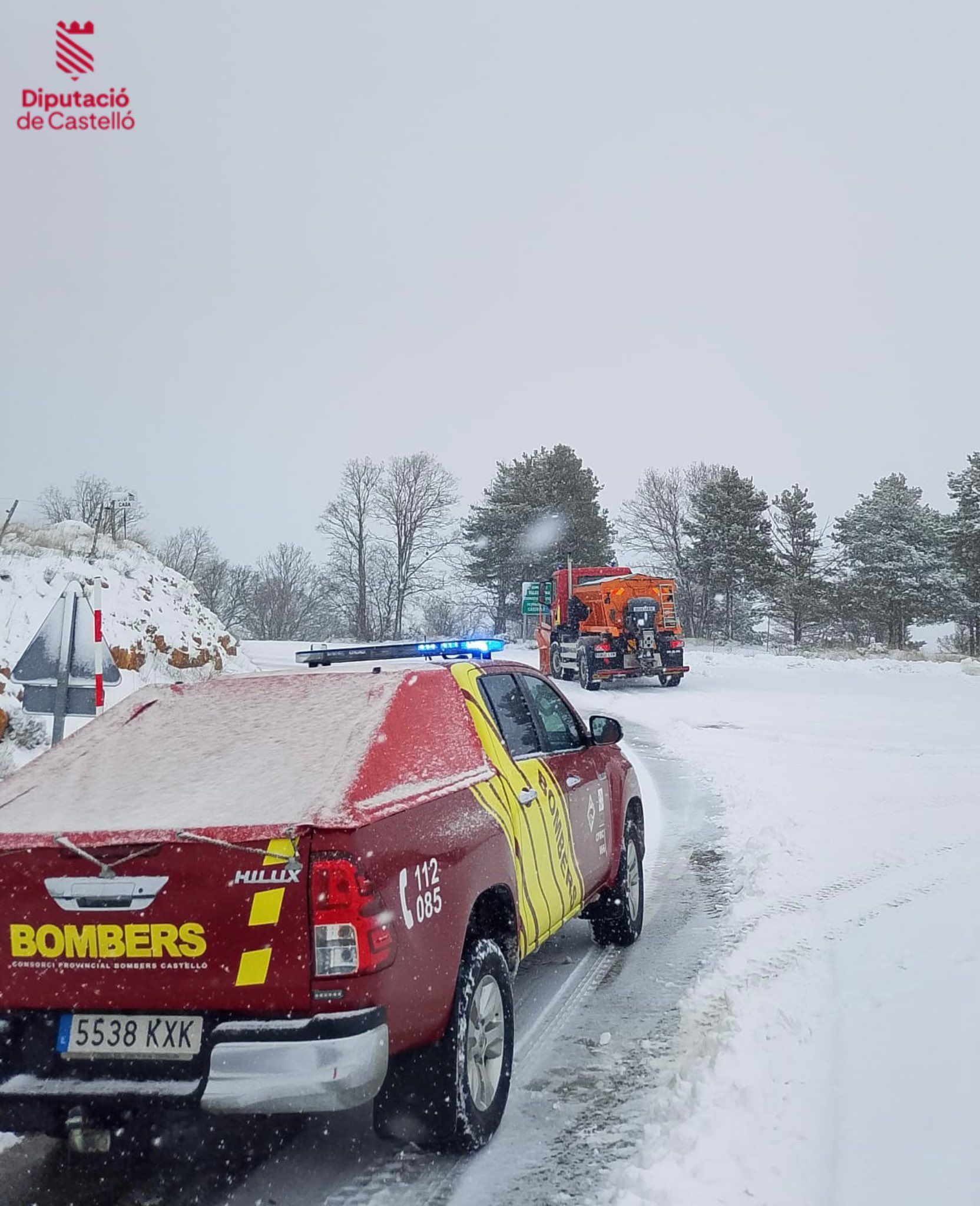 Ante esta situación, los Bomberos de la Diputación de Castellón han activado el dispositivo de vialidad invernal. Los equipos de quitanieves permanecen trabajando de forma preventiva y continuada en las carreteras afectadas por la nieve a partir de cotas cercanas a los 900 metros, con el objetivo de garantizar la seguridad y mantener la circulación.