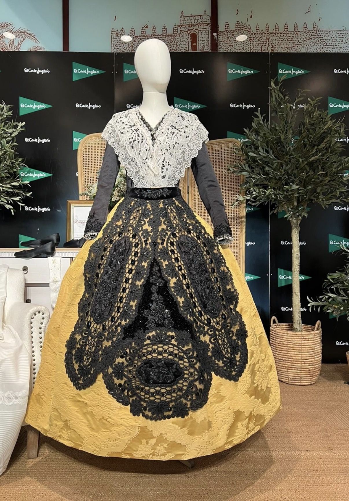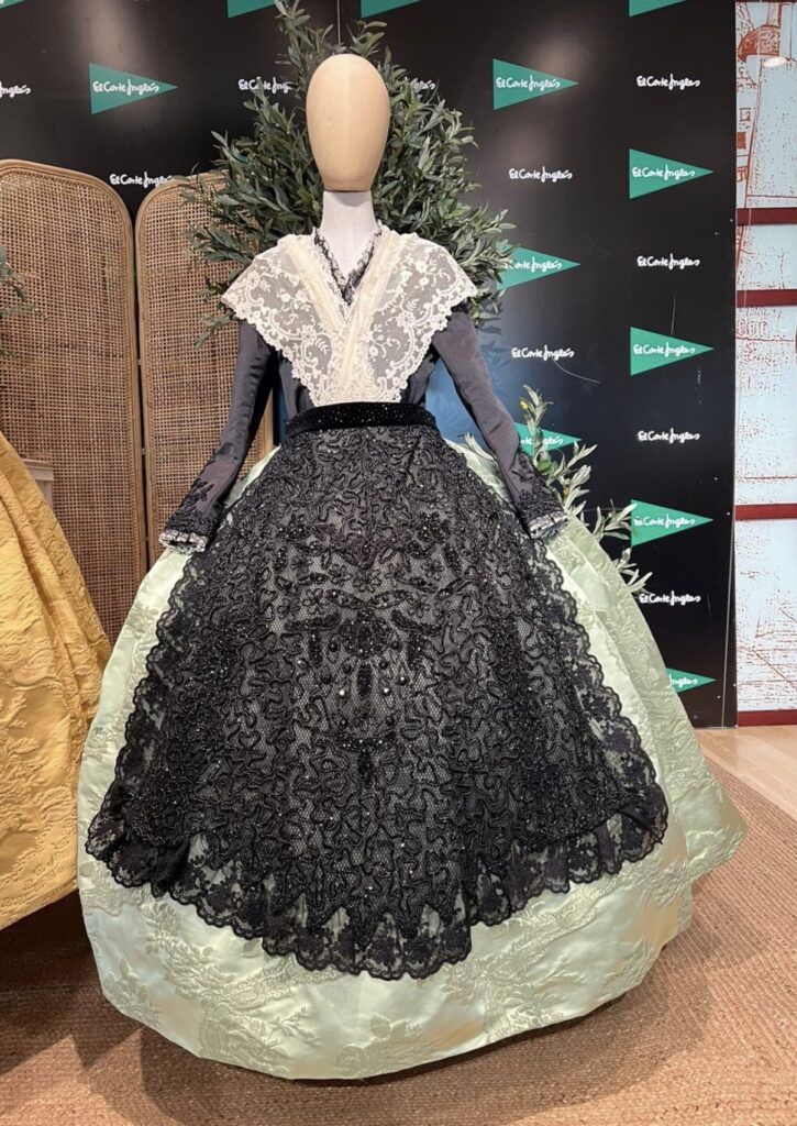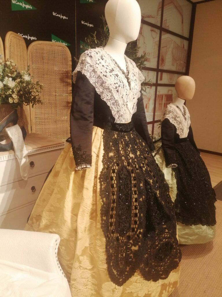Se trata del obsequio que El Corte Inglés realiza a las máximas representantes de las fiestas de Castellón la indumentaria de castellonera que estrenarán en su acto de homenaje. Un trabajo, de nuevo confeccionado por Amparo Pitarch en manteles y delantal y con el tejido de Vives i Marí
