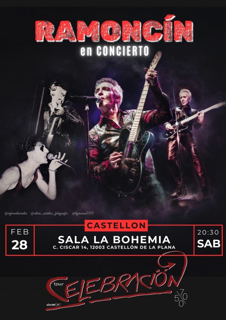 Ramoncín torna als escenaris per presentar la seua esperada gira “Tour CELEBRACIÓN 50/70”, amb la qual commemora un doble aniversari: els seus 70 anys i els 50 anys de carrera musical. Tota una fita que confirma al cantant com una llegenda viva de la música rock del nostre país. Aquest tour, iniciat el 2025, ha recorregut bona part de les ciutats de la geografia peninsular i ha fet parada en alguns dels principals festivals espanyols com Inverfest i Suite Festival. La Bohemia s’uneix, així, a la selecta llista de sales on Ramoncín “celebrarà” amb el seu directe enèrgic, potent i sense artificis.