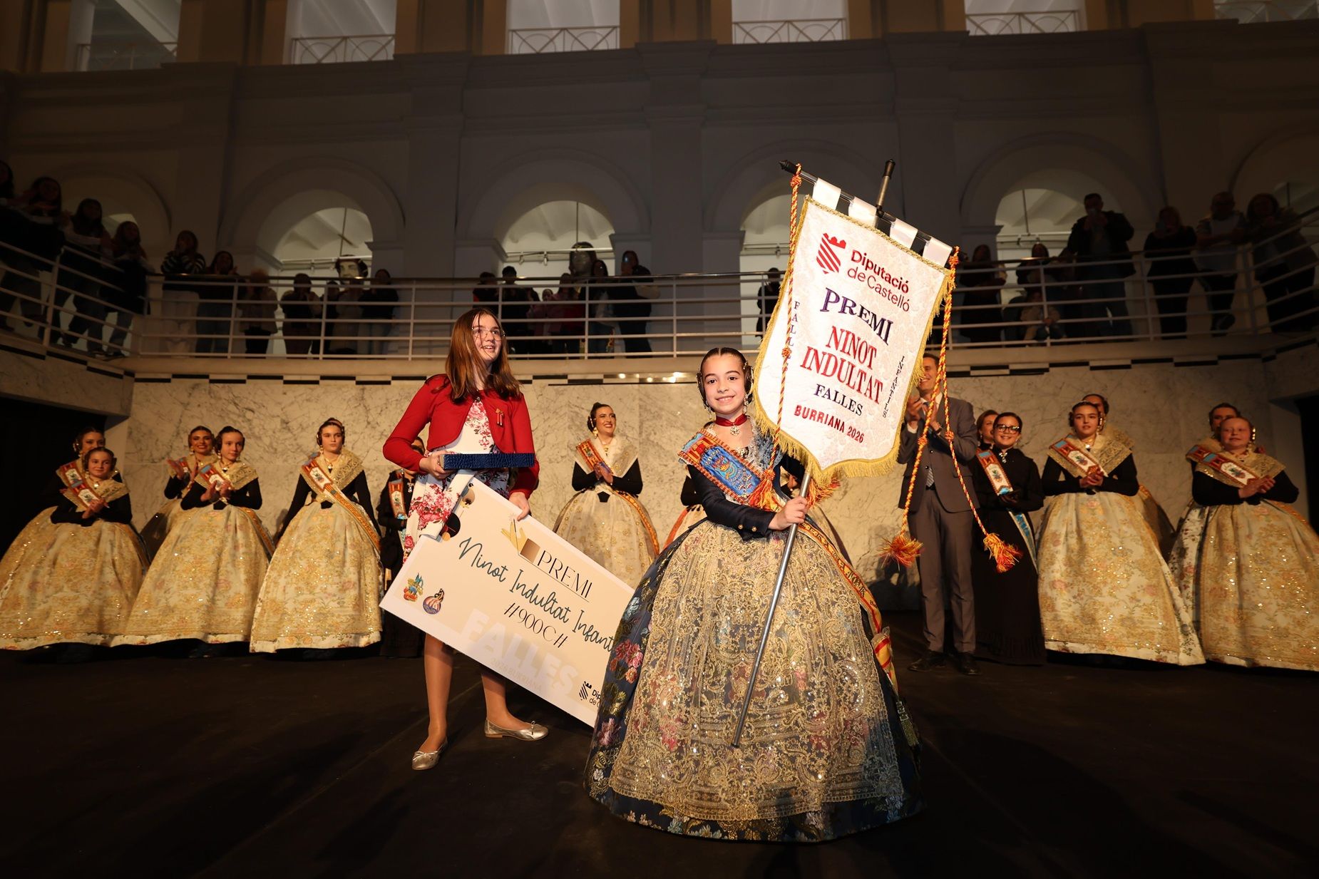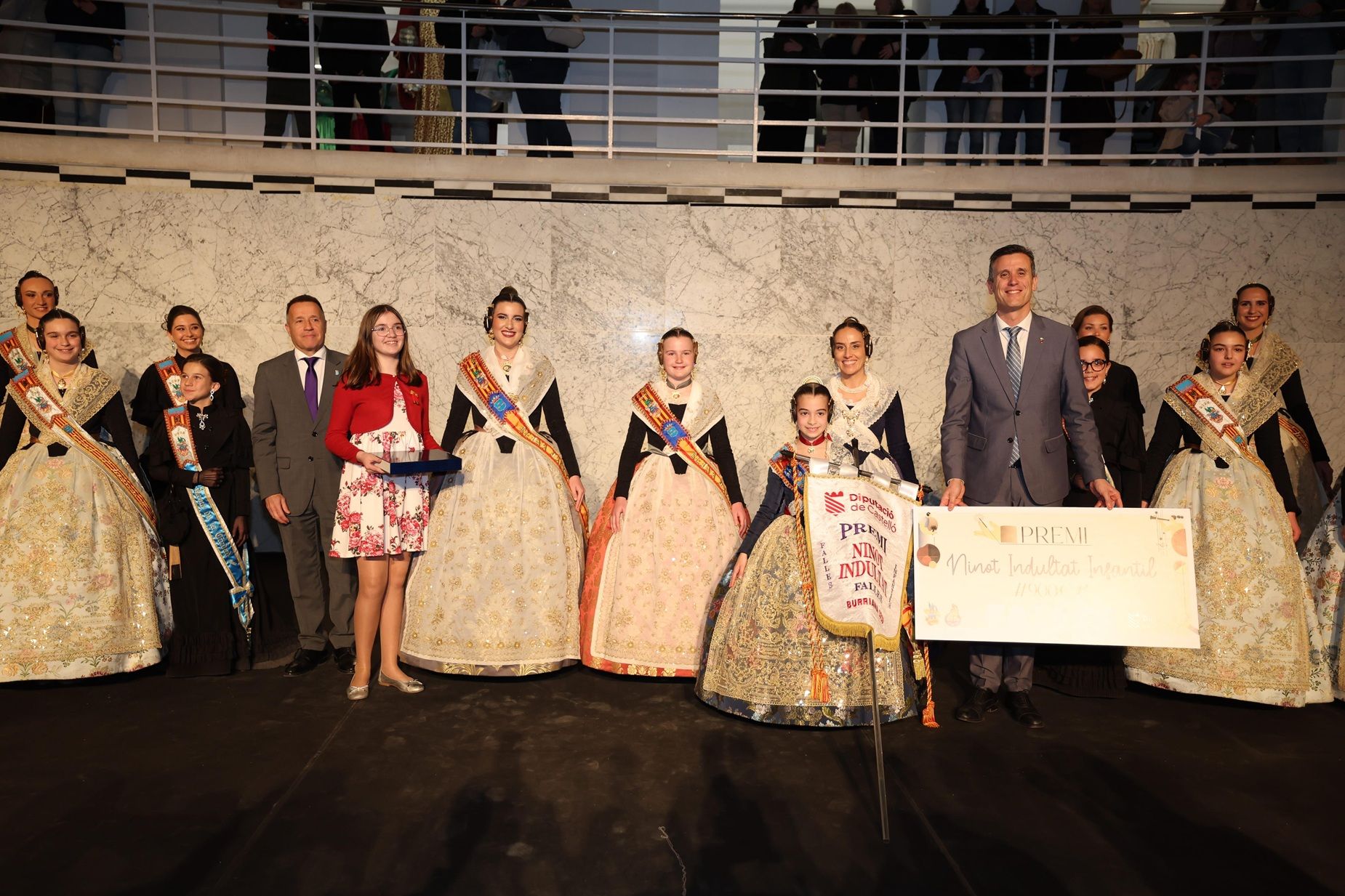 A més, s’han atorgat els guardons al millor ninot de cada categoria, reconeixent l’excel·lència del treball artesà en les categories Especial, Primera i Segona. En la categoria Especial, el ninot premiat ha sigut el de la Falla Barri València, mentre que en la Primera i Segona categoria han sigut el de la Falla Barri La Vila i Falla Barri La Ravalera respectivament. D’altra banda, pel que fa a les infantils, la Falla Don Bosco s’ha alçat amb el premi a categoria Especial, seguida de la Falla Societat de Caçadors en Primera categoria i la Falla Rei Jaume I en Segona categoria.