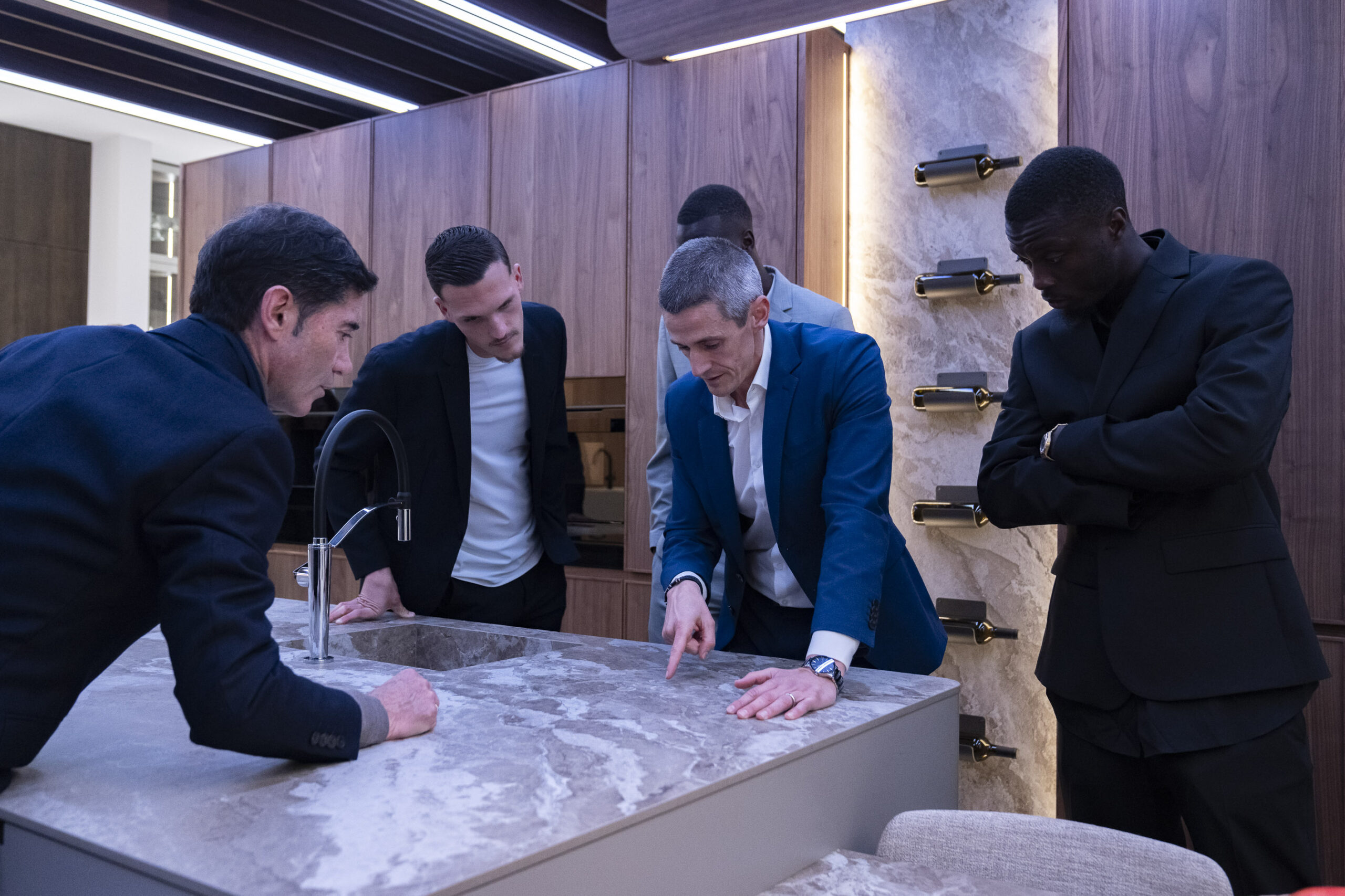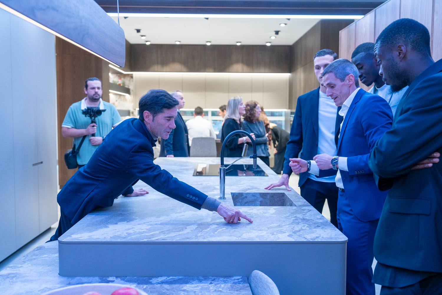 El Villareal C.F. ha visitado la exposición de Gamadecor, firma de mobiliario de cocinas y baños de Porcelanosa.
