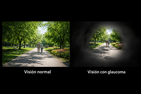 El glaucoma provoca una pérdida progresiva del campo visual periférico que deriva en la conocida visión en túnel o “en cañón de escopeta”, dificultando actividades cotidianas como conducir, leer o desplazarse con seguridad.