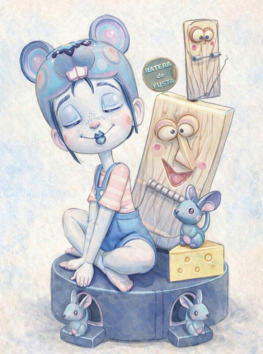 Però si el monument gran mira cap al futur amb mirada crítica, el monument infantil recupera el sabor dels contes de sempre amb “La rateta formatgera”. En esta història, la protagonista és una experta a triar el millor menú a la “magatzem lletera”. Coneix marques, formes i aromes; evita trampes amb astúcia i mai es conforma, sempre a la recerca de noves delícies.