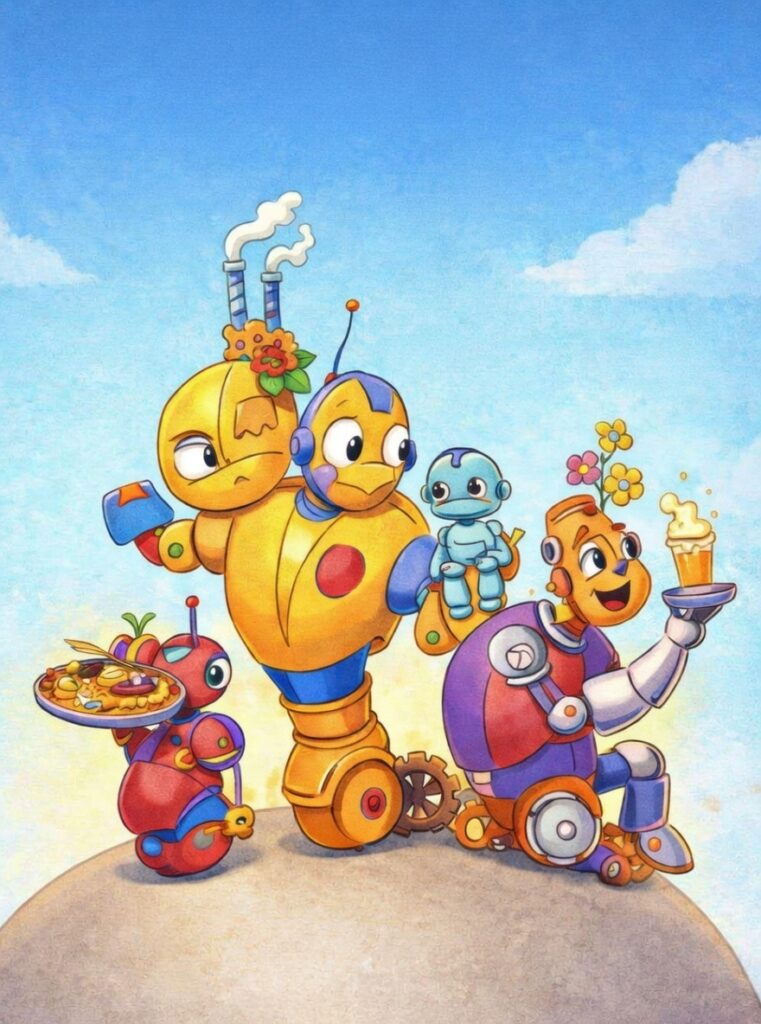 Les escenes quotidianes reforcen este contrast: el robot que neteja la casa, el que cuida el jardí amb precisió mil·limètrica, o aquells primers robots de joguet que funcionaven amb piles i que feien les delícies dels xiquets mentre els empenyien pel terra. I, en una imatge carregada de tendresa, el iaio que juga amb la neta, intercanviant papers fins que la fantasia converteix el joc en espectacle. Entre cables i bateries, La Mota recorda que la humanitat no es pot programar.