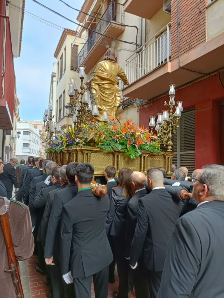 La peana del Cristo Resucitado de la parroquia de la Sang de Castellón busca barreros. El anuncio sería impensable en gran parte de la geografía española, sin embargo, aquí ya no es novedad. La demanda para ser «barrero del Resucitado» está circulando por grupos y redes sociales para conseguir voluntarios. La peana está pensada para que la lleven ser a hombros por 60 personas y de momento, solo hay 38 inscritos. Todo esto, a solo once días de la procesión del Encuentro.