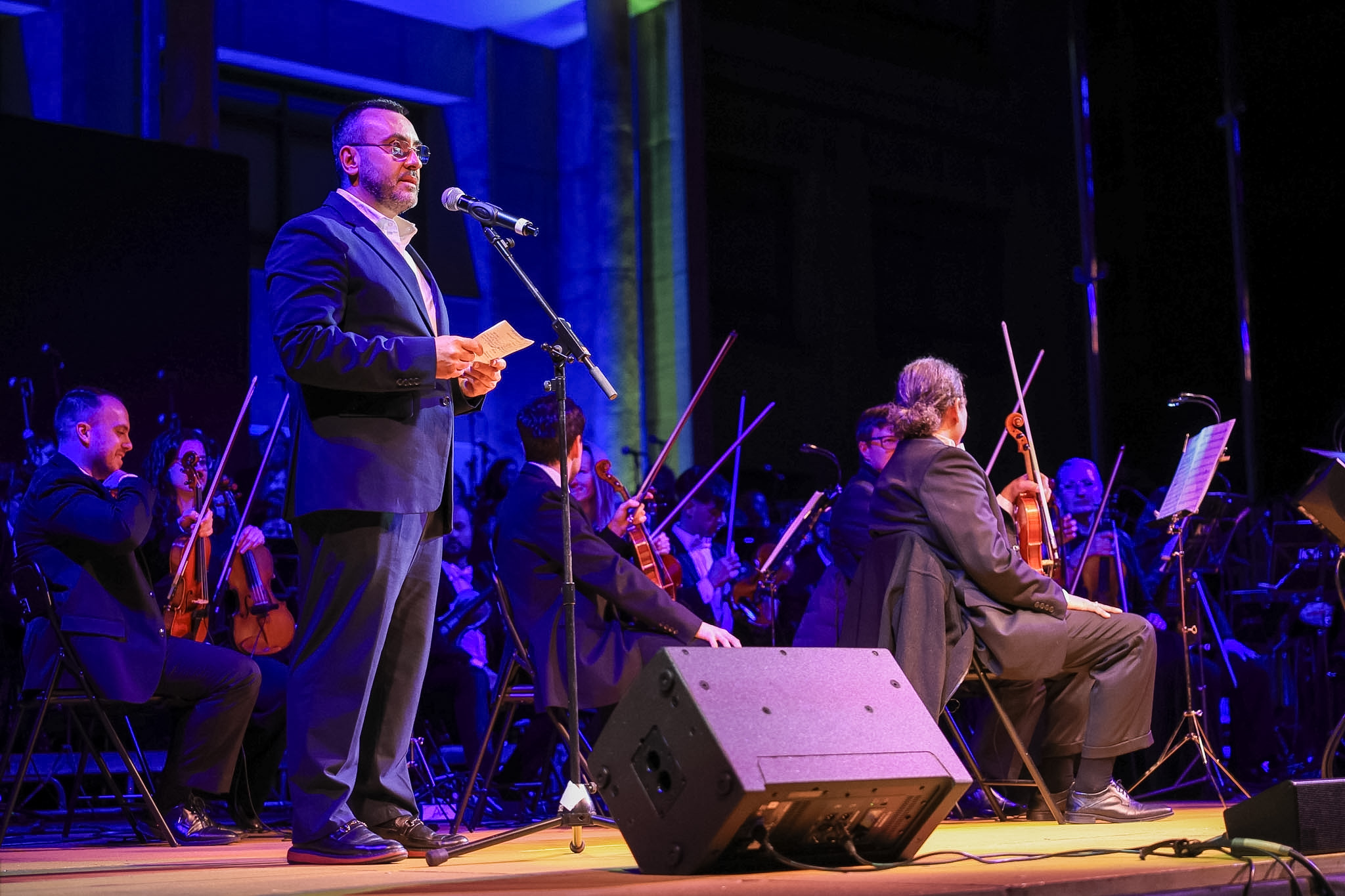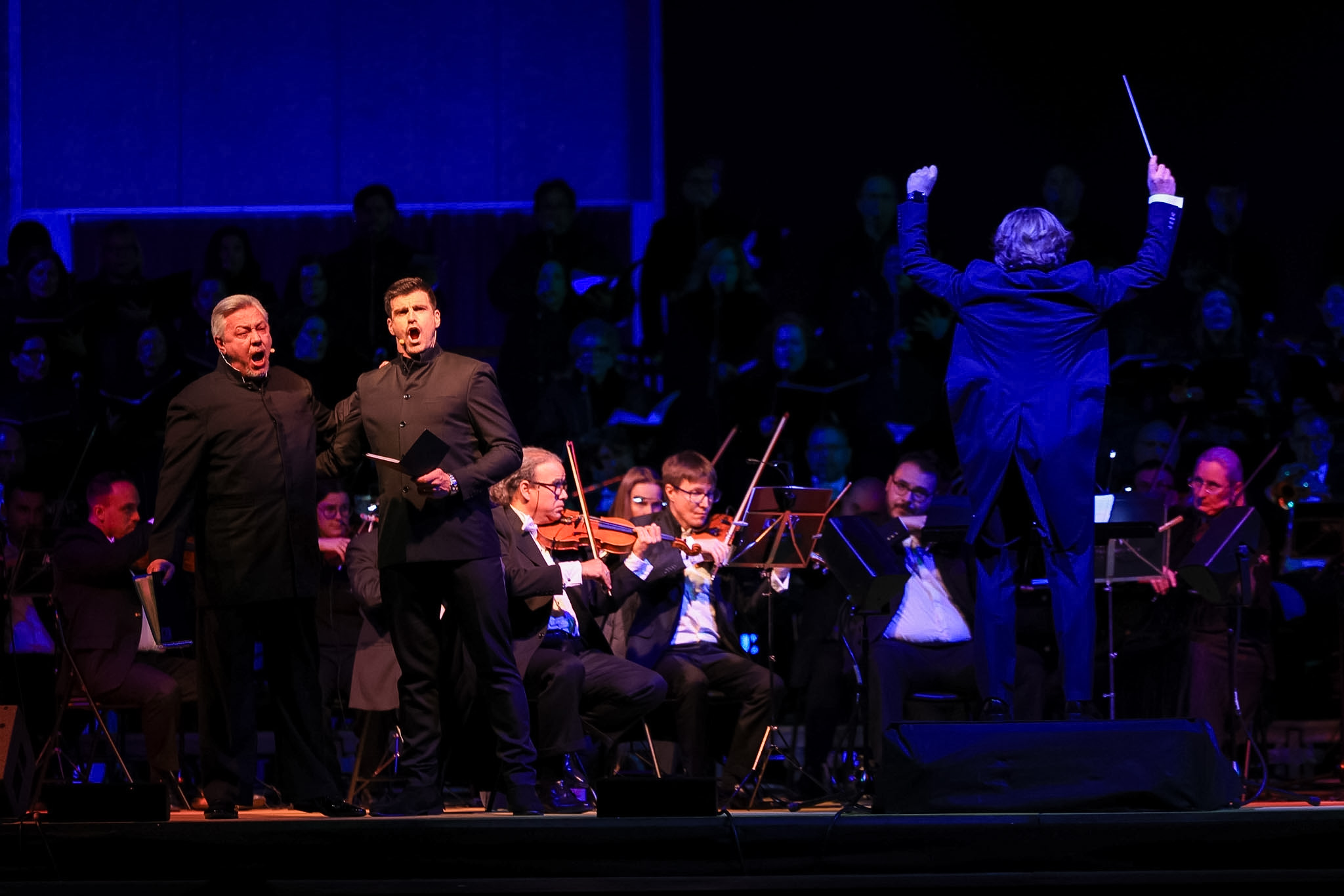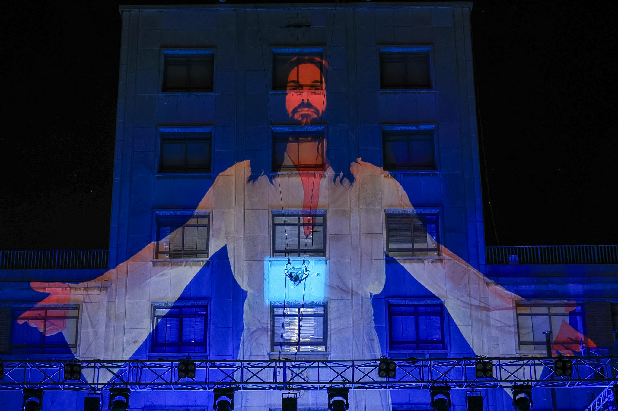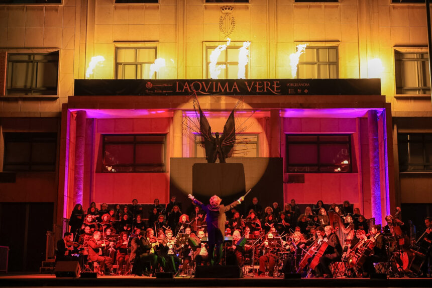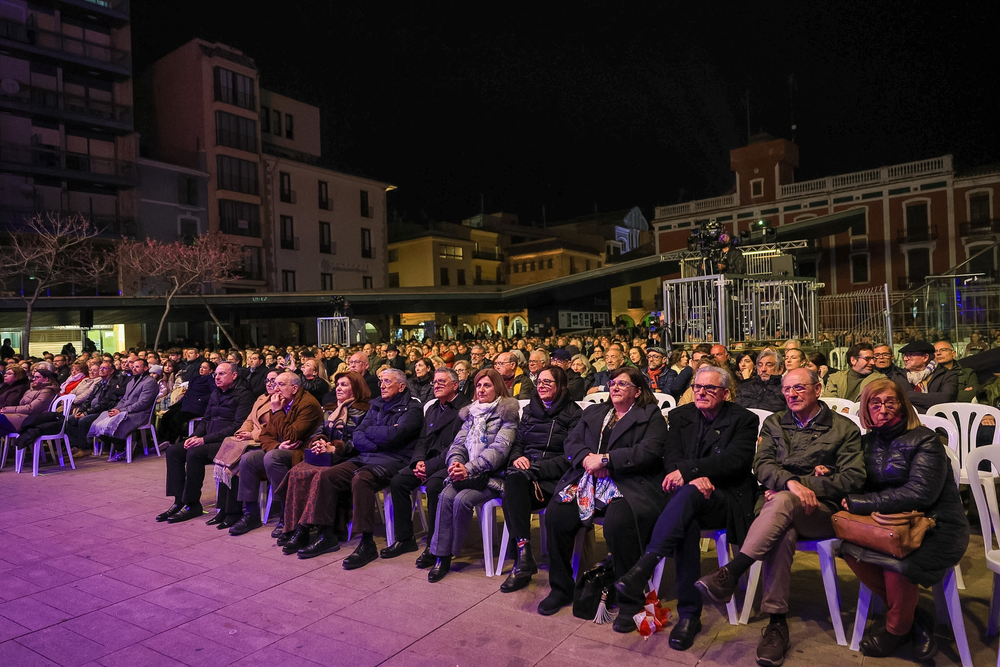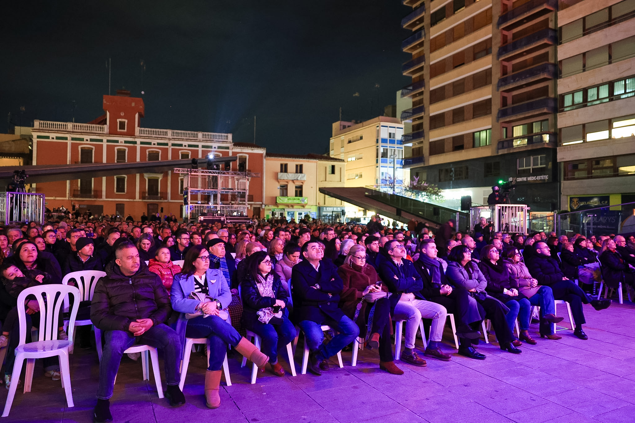 Imatges de la representació de la passió musical “Laquima Vere”, que ha tingut lloc aquesta nit a la plaça Major de Vila -real, en un ambient carregat d’emoció i gran afluència de públic. L’espectacle ha comptat amb la participació de prop de 200 persones, entre artistes i tècnics, que han fet possible una posada en escena acurada, intensa i plena de simbolisme, combinant música, interpretació i escenografia per recrear els moments més significatius de la Passió.