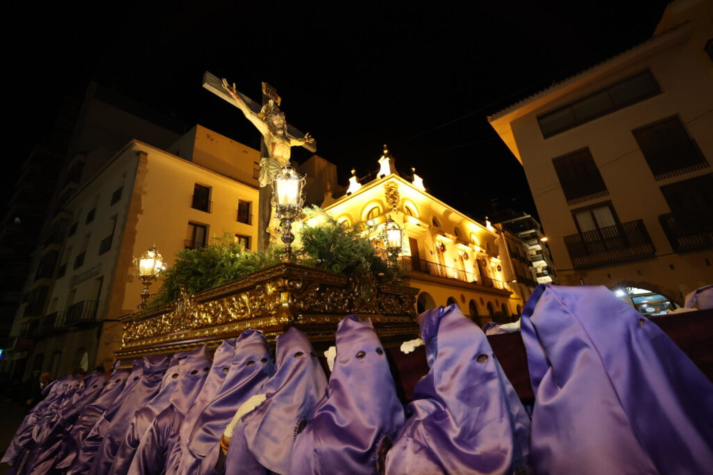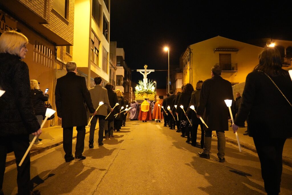 Un acto sobrio en el que participan centenares de devotos en una procesión marcada por el silencio de la noche y las luces de las velas abriéndose paso por las calles del barrio. El acto, que tiene fines solidarios, empieza y termina en la Capilla del Cristo del Hospital. Esta cofradía también promueve la celebración del Canto de las 5 Llagas cada miércoles de Cuaresma.