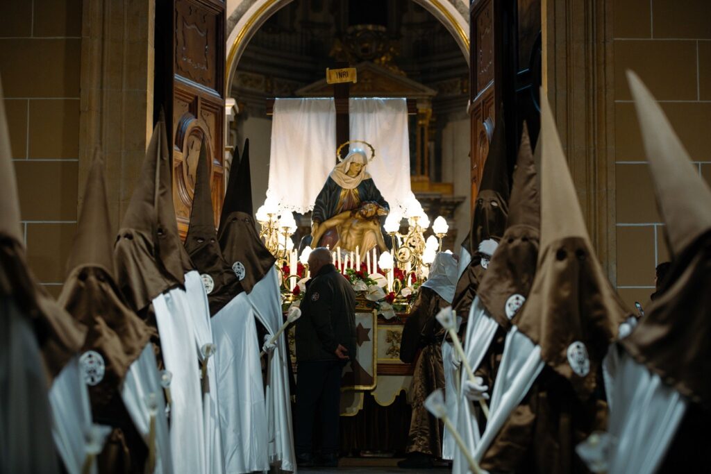 Una imagen majestuosa que procesiona bajo palio cada Miércoles y Viernes Santos. La cofradía celebra anualmente una eucaristía en sufragio de los difuntos y todas las “Dolores” de la ciudad.