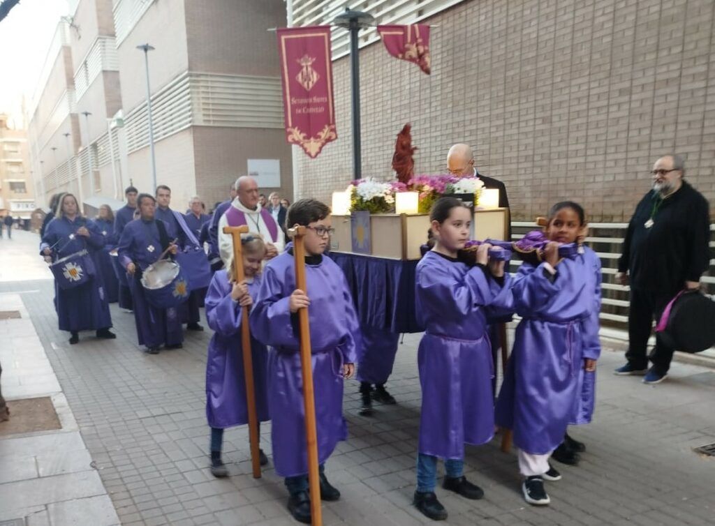 Con la mirada vigilante para que los pequeños barreros y barreras no perdieran el paso y peligrara la imagen de Santa Maria Magdalena, Castellón ha celebrado su procesión infantil . Ha sido un éxito de participación. Ha tenido lugar, este Martes Santo, desde la parroquia de San Vicente , donde la cofradía tiene su sede.