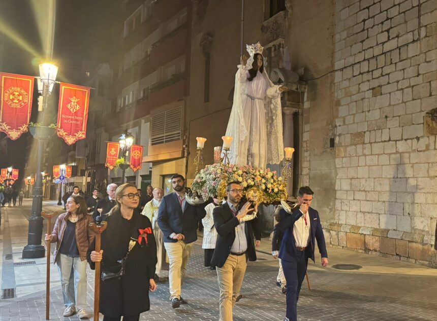 Castellón repitió este sábado por la noche un pequeño acto sencillo pero clave para que este domingo se pudiera realizar la procesión del encuentro. Se trata de un «traslado». En concreto el de la imagen de Nuestra Señora del Amor Hermoso, la virgen de la Sangre que viste de blanco, popularmente conocida como la ‘Pasqüera’. La imagen titular de la rama de los licenciados -la de los cofrades con cordón rojo, de las tres en que se divide la Cofradía de la Sangre.