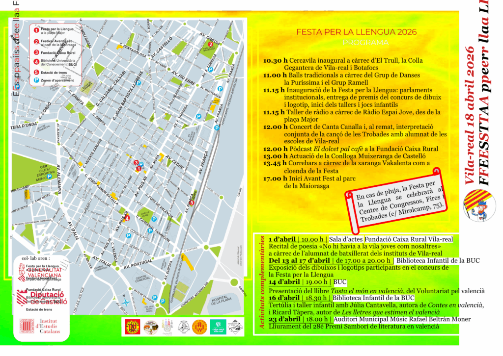 La ciutat de Vila -real acollirà el pròxim 18 d’abril una nova edició de a Festa per la Lengua 2026, una jornada festiva i reivindicativa dedicada a la promoció del valencià.