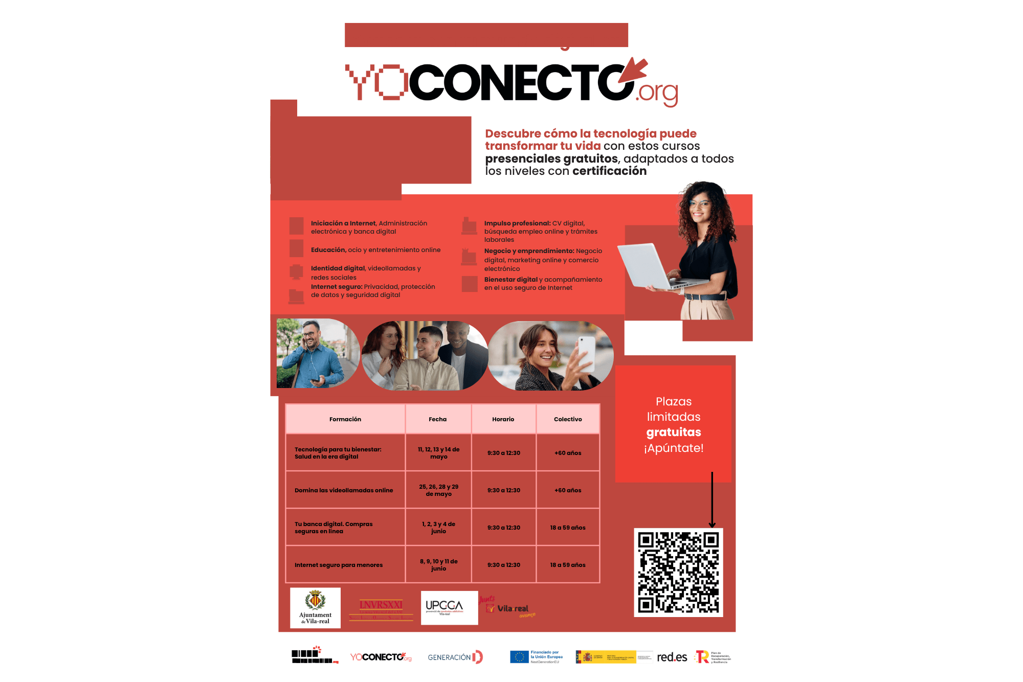 Los cursos, que se desarrollarán durante los meses de mayo y junio, abordarán diferentes ámbitos clave de la competencia digital: “Tecnología para tu bienestar: salud en la era digital”, los días 11, 12, 13 y 14 de mayo (para mayores de 60 años); “Domina las videollamadas en línea”, los días 25, 26, 28 y 29 de mayo (para mayores de 60 años); “Tu banca digital. Compras seguras en línea”, los días 1, 2, 3 y 4 de junio (para personas de entre 18 y 59 años) y “Internet seguro para menores”, los días 8, 9, 10 y 11 de junio (para personas de entre 18 y 59 años). Las sesiones tendrán un enfoque práctico y adaptado a los diferentes perfiles de participantes, con el objetivo de facilitar un aprendizaje útil y aplicable al día a día.