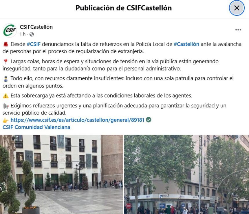 Lectura: La Policía Local exige refuerzos para atender la afluencia masiva de personas en algunos puntos de Castellón por la regularización