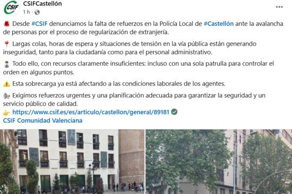 El sindicato CSIF ha remitido un escrito tanto a Personal como a la Concejalía de Seguridad advirtiendo de los riesgos de estas situación