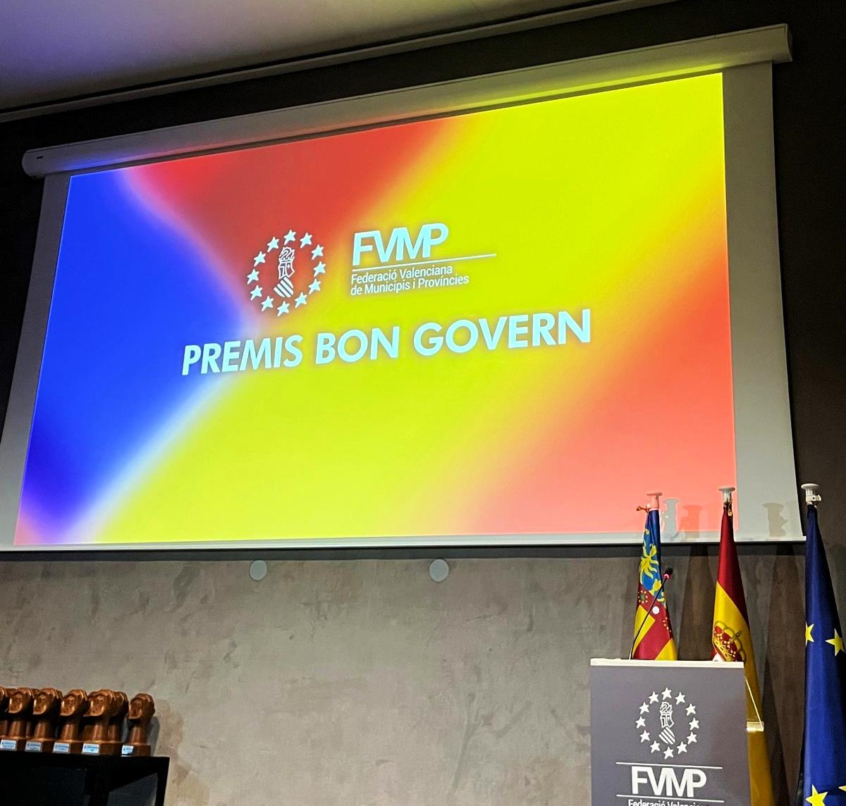 El Ayuntamiento de Cortes de Arenoso ha sido distinguido por la Federación Valenciana de Municipios y Provincias (FVMP) en la VIII edición de los Premios Buen Gobierno. El alcalde de la localidad, D. Florencio Catalán Bagán, junto a la primera teniente de alcalde, Dña. Nuria Linuesa, asistieron ayer al acto de entrega para recoger este importante reconocimiento.