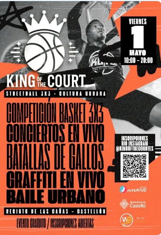Castellón acogerá el King of the Court (KOTC) este 1 de mayo. Se trata de un gran evento de ocio juvenil gratuito que fusiona el deporte con las expresiones culturales urbanas más actuales. La cita impulsada por la concejalía de deportes, busca convertir la ciudad en el epicentro del streetball y el arte joven.