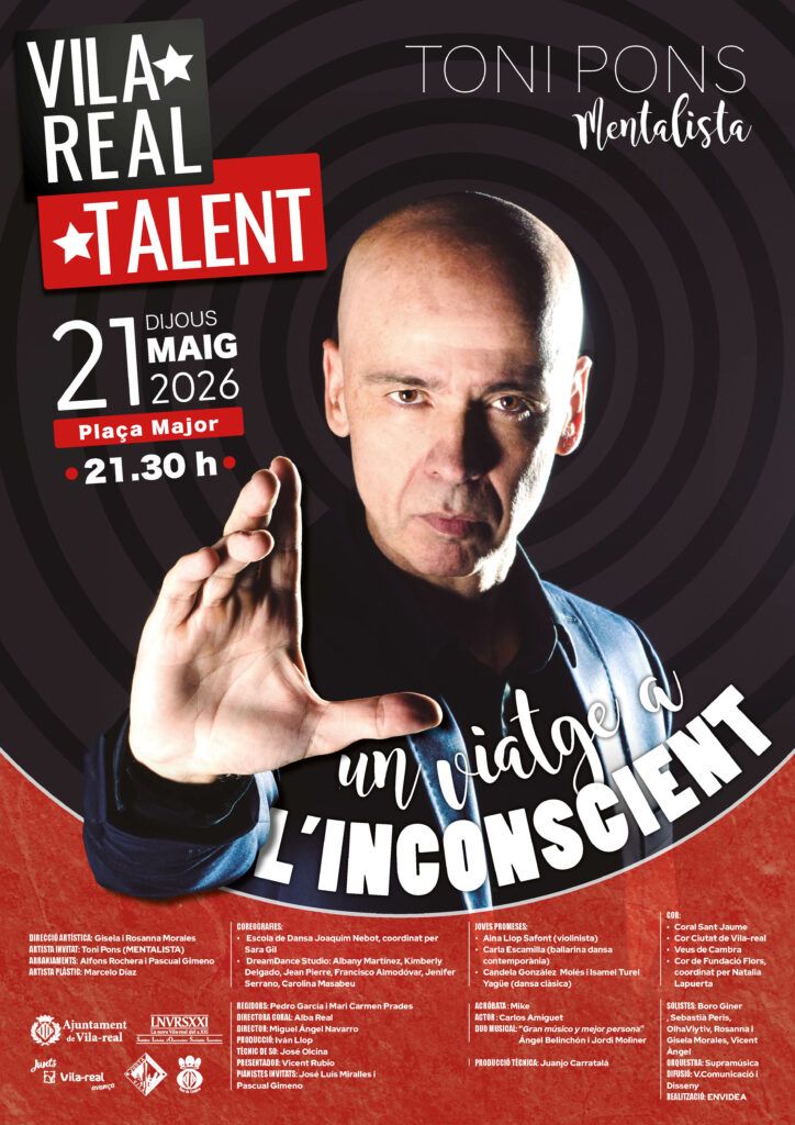 La cita tindrà lloc el dijous 21 de maig a les 21.30 hores a la plaça Major, on el públic podrà gaudir d’un espectacle amb segell propi que combina música, dansa, interpretació i arts escèniques. En aquesta edició, el mentalista Toni Pons protagonitzarà una proposta sorprenent sota el títol Un viatge a l’inconscient, aportant un toc innovador i fascinant a la vetlada.