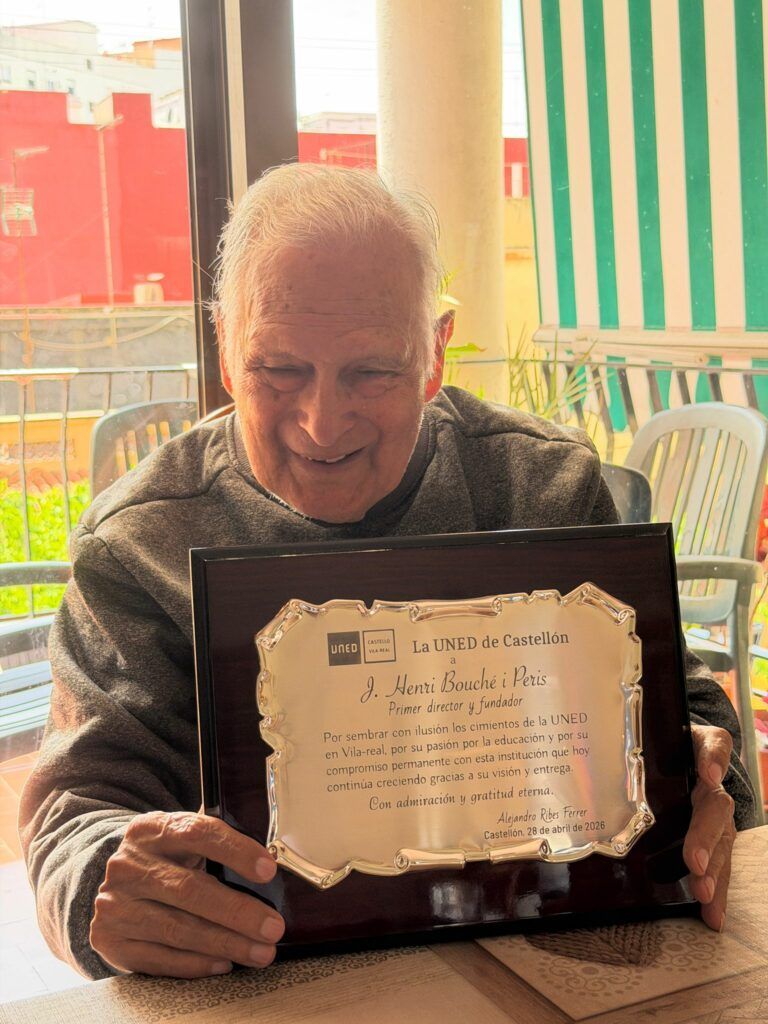 Ayer, día 28, no fue un día cualquiera para la UNED de Castellón. Fue un día de memoria, de gratitud y de reconocimiento. En un acto íntimo y profundamente emotivo celebrado en su domicilio, Henri Bouché recibió una placa que honra toda una vida dedicada a la UNED y acercar la educación a quienes más la necesitaban.