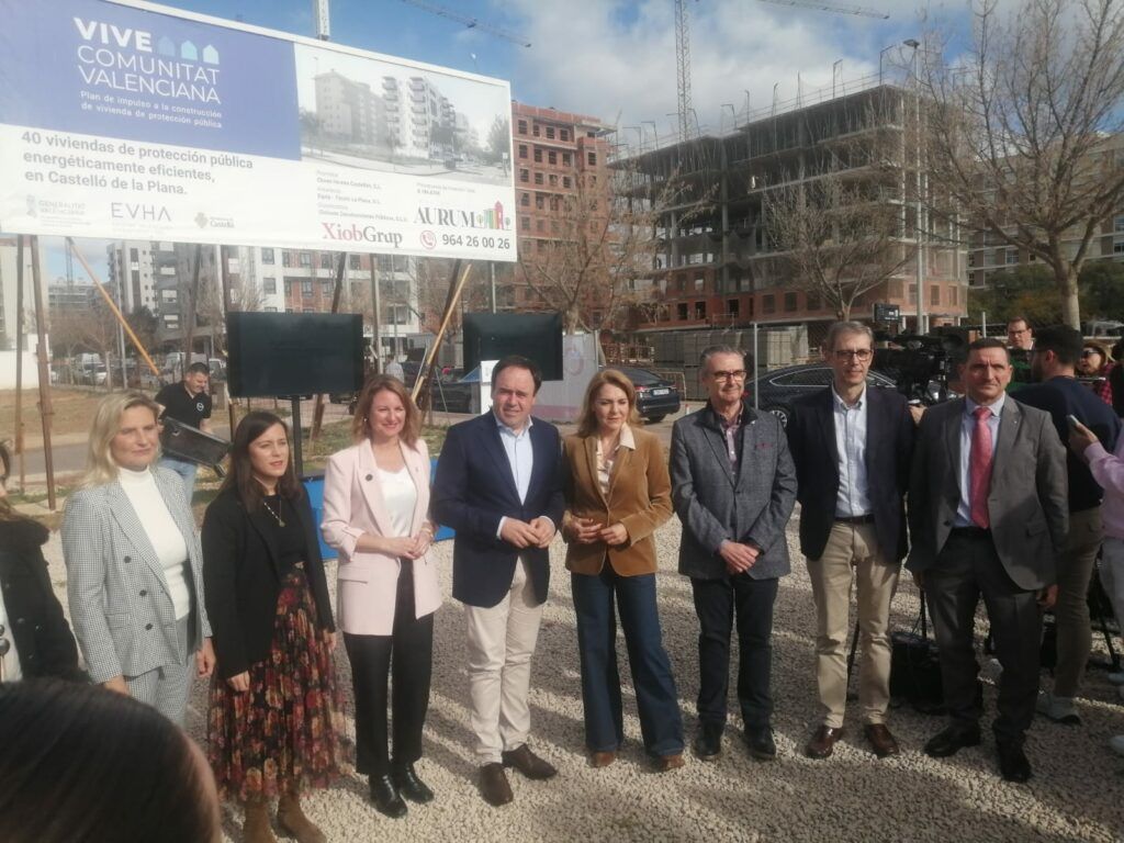 La alcaldesa de la ciudad de Castellón Begoña Carrasco y el president de la Generalitat Valenciana Juanfran Pérez Llorca han asistido a la presentación de las promoción de Viviendas de Protección Pública (VPP) en el barrio de Sensal, en la calle Riu Llobregat nº 14 de Castellón de la Plana.