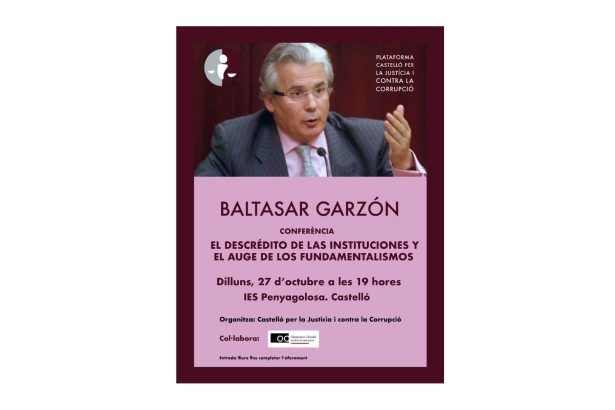 “Castelló per la Justicia y contra la Corrupció” debate sobre el descrédito de las instituciones El jurista jienense, Baltasar Garzón,…