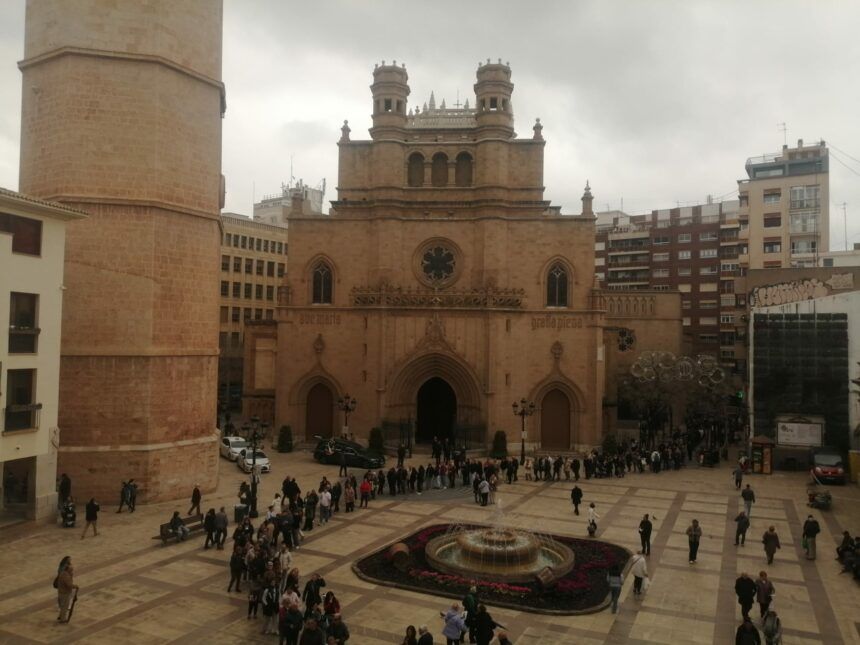 Este martes, mucho antes de las once de la mañana, la cola cruzaba la plaza, daba la vuelta por la calle mayor, bordeaba el mercado provisional de la plaza Santa…