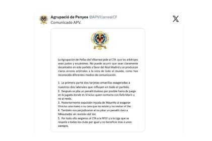 La Agrupación de Peñas del Villarreal carga contra el arbitraje ante el Real Madrid y exige igualdad en las decisiones